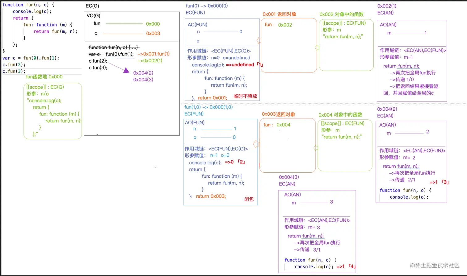 闭包套娃练习题 gggg434343_321 2021-01-28 52 阅读1分钟 function fun(n, o) { console.log(o); return { fun: function (m) { return fun(m, n); } }; } var c = fun(0).fun(1); c.fun(2); c.fun(3);