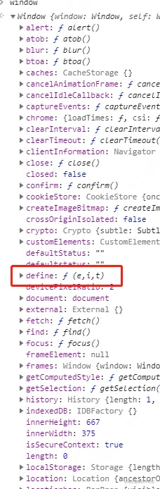 可以看到使用require.js, 会在window对象上绑定,一个define,require,requirejs方法