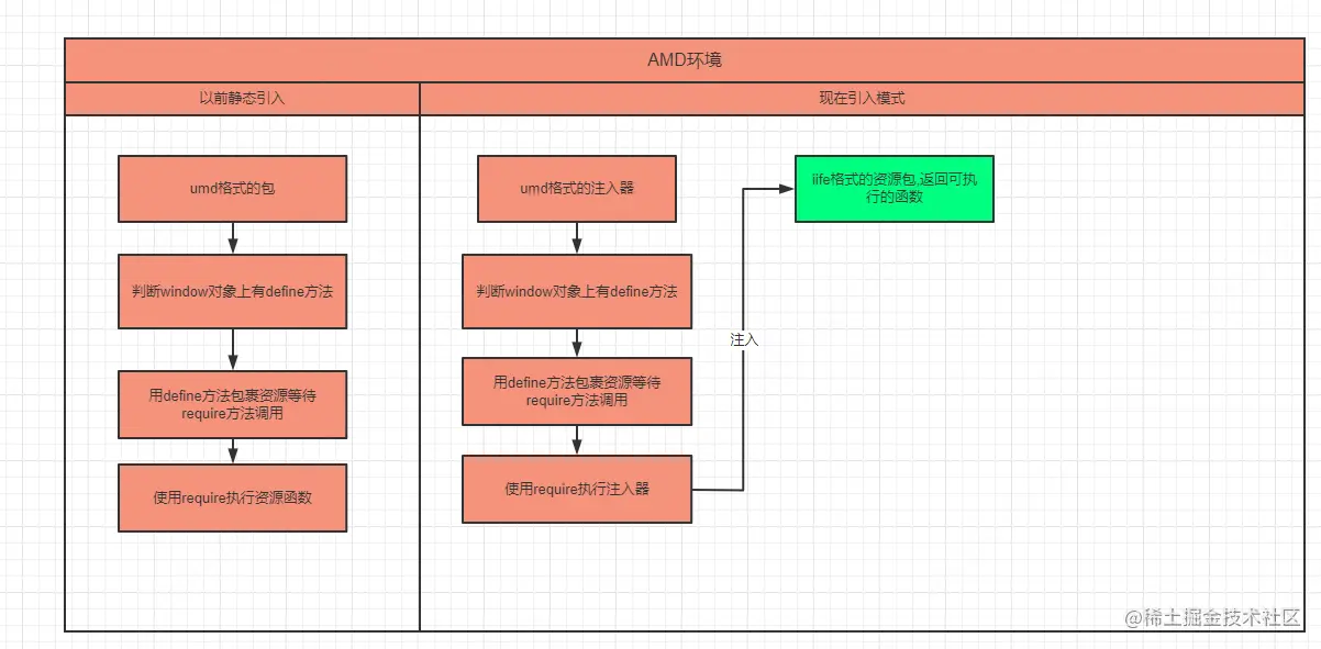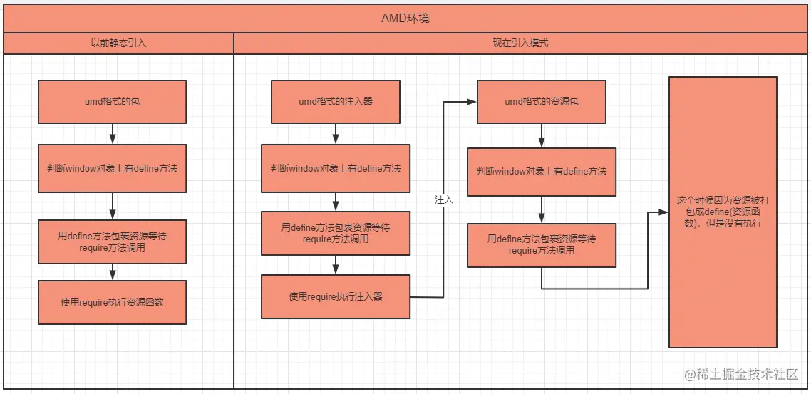 - 判断当前全局变量上是否有define方法,如果有,认为是amd打包格式
