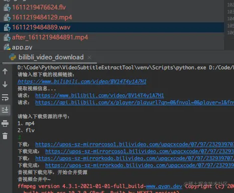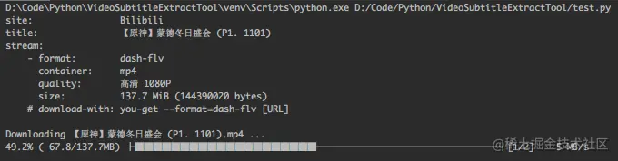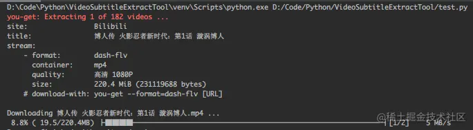 运行后,控制台会输出视频的下载进度: