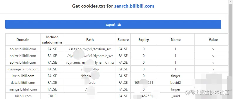 如果你有B站大会员,可在下载时设置下Cookie,此处使用Chrome插件 Get cookies.txt 插件导出Cookie文件。登录完你的B站账号后,用它来导出Cookies: