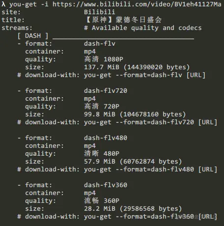 you-get -i 链接地址