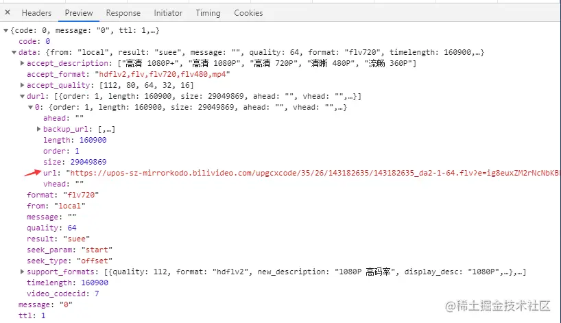 等下再验证下这个猜测,接着看下哪里能拿到视频源的URL,此处请求另外一个地址(覆盖尽可能多的清晰度):