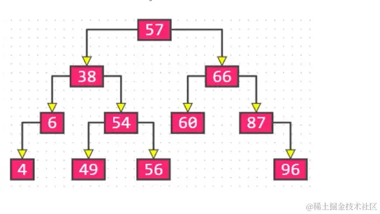如图。是一个二叉树。可以看得出来他是一个有序树。他的左子树比又子树小