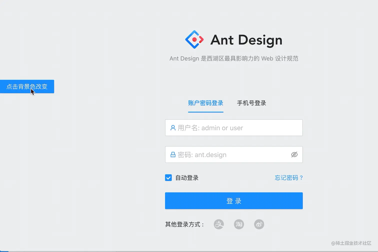 + }}>点击背景色改变</Button>