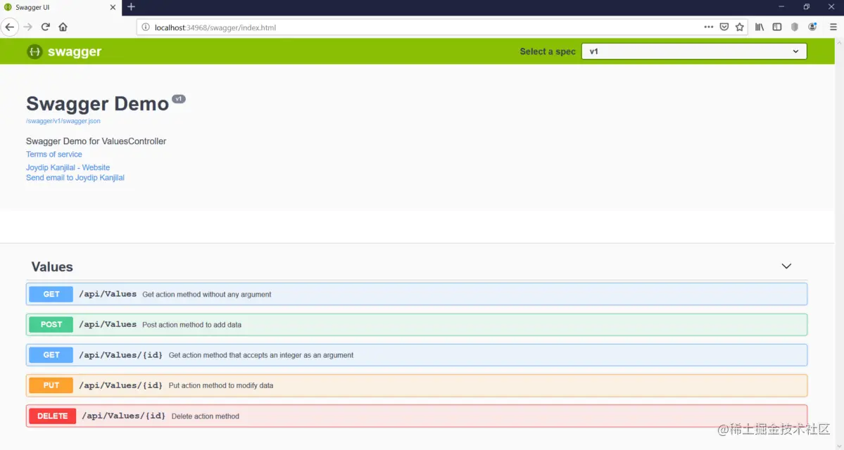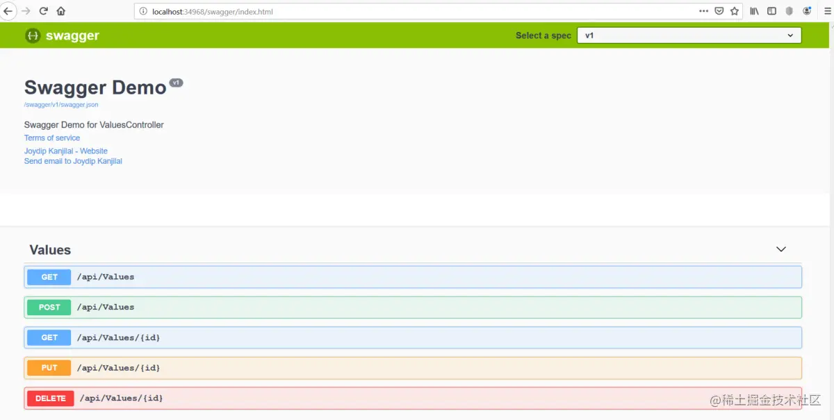 接下来在 ValuesController 下的每一个 Action 上都加上注解,下面就是修改后的 ValueController。