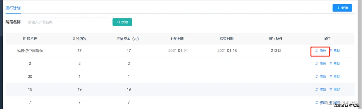 - 在保存 信息时=======> 1、 履行计划页面: 有id,可以在当前页面更改,所以可以根据id找到具体信息那个页面。