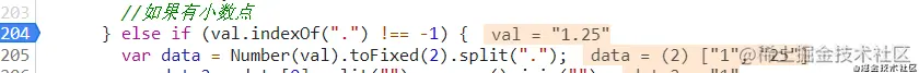 - ====>split(".")方法可把输入的小数用"."分割成数组 =====>有小数点的情况下
