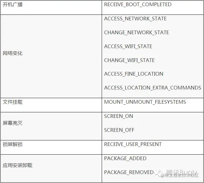 在发生特定系统事件时,系统会发出响应的广播,通过在 AndroidManifest 中“静态”注册对应的广播监听器,即可在发生响应事件时拉活。