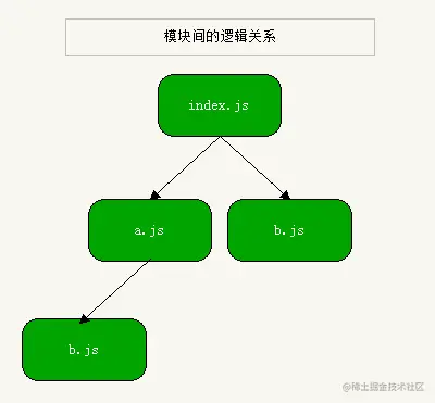 b.js模块通过module.exports导出了一个内部变量,并且它在a.js和index.js两个模块中能被加载。 说明它具有导入导出模块的方式,同时能够处理基本的依赖关系。- 在不同的模块都加载了