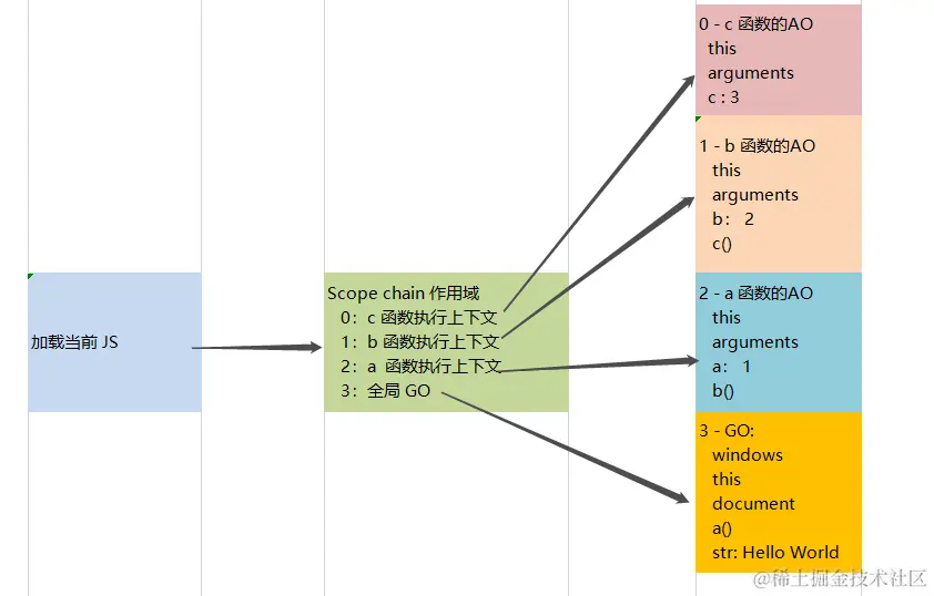 执行 c 函数时的作用域、作用域链,如下图: