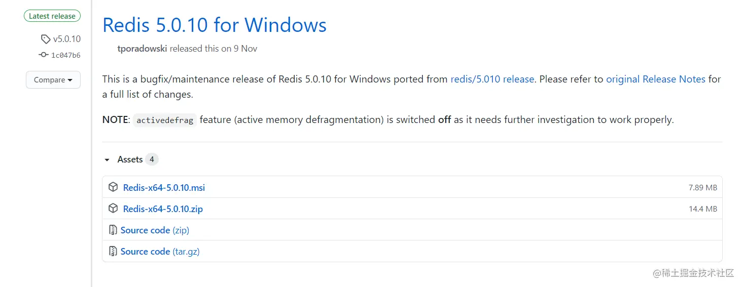 选择合适的版本,如Redis-x64-5.0.10.msi,下载后安装。