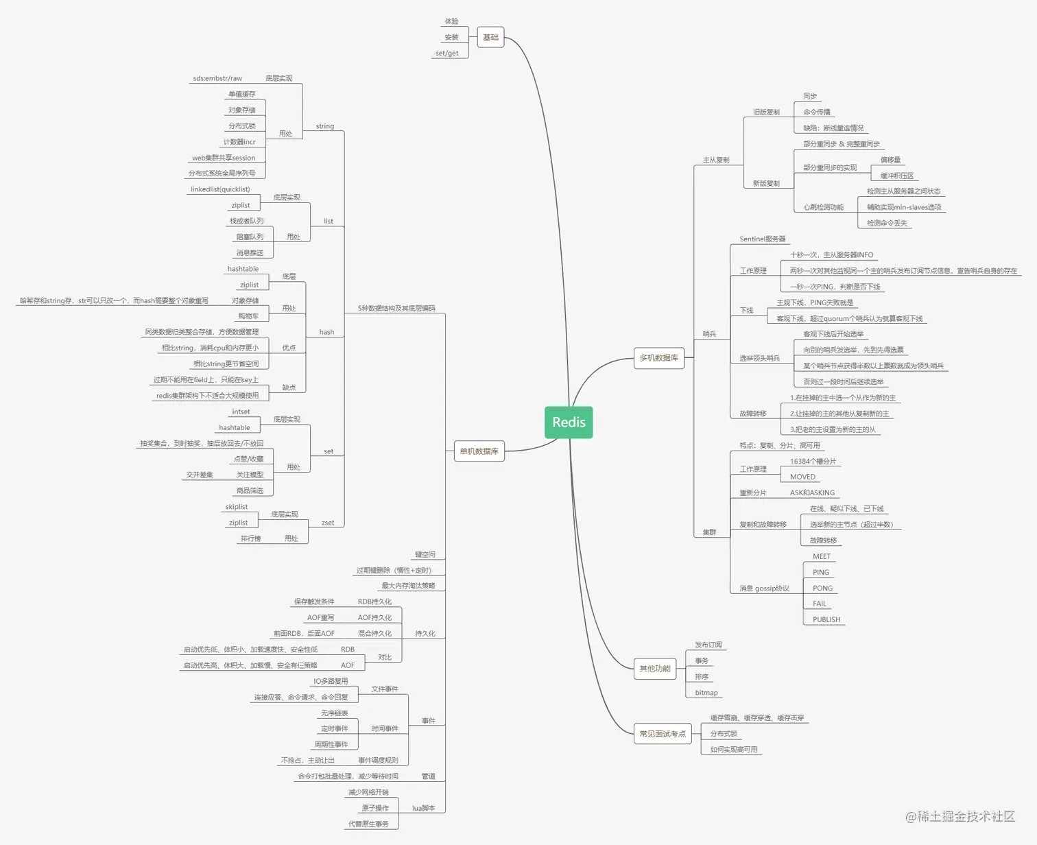 以下是部分Redis知识点总结思维导图,后续文章会按照图中模块拆分来学习。