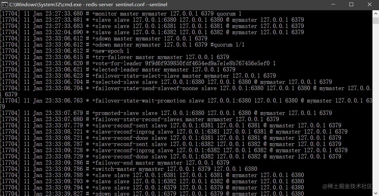 sentinel monitor mymaster 127.0.0.1 6379 1