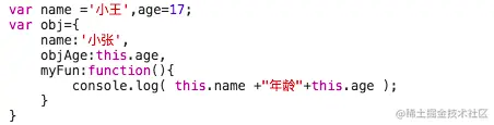 obj.myFun() //小张年龄undefined