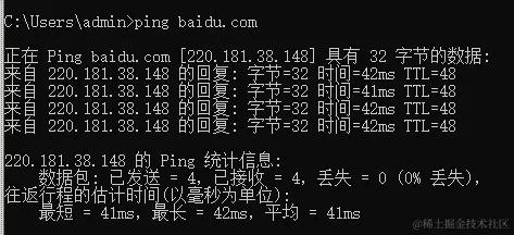 输入cmd弹出DOS窗口,输入ping 域名(baidu.com)查看IP