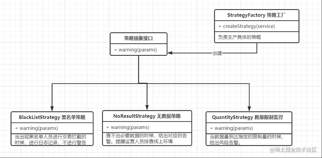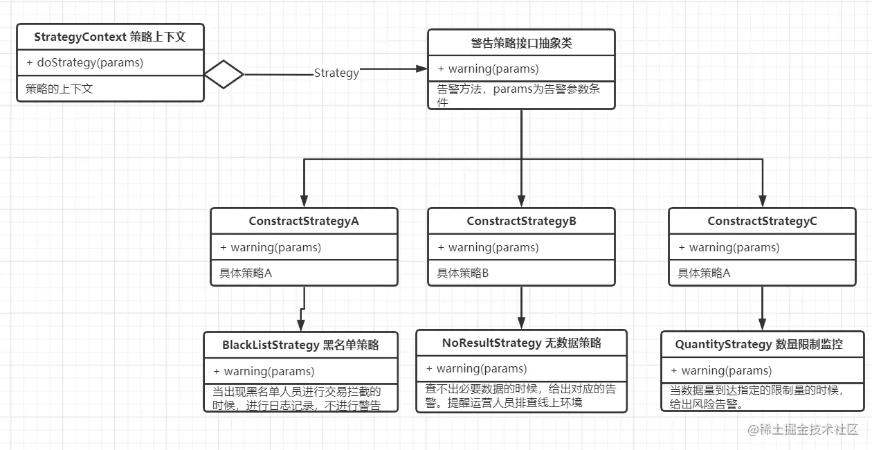 从上面的内容可以看出,我们只需要把策略传给上下文,上下文会根据传入的策略自动匹配对应的策略执行报警。