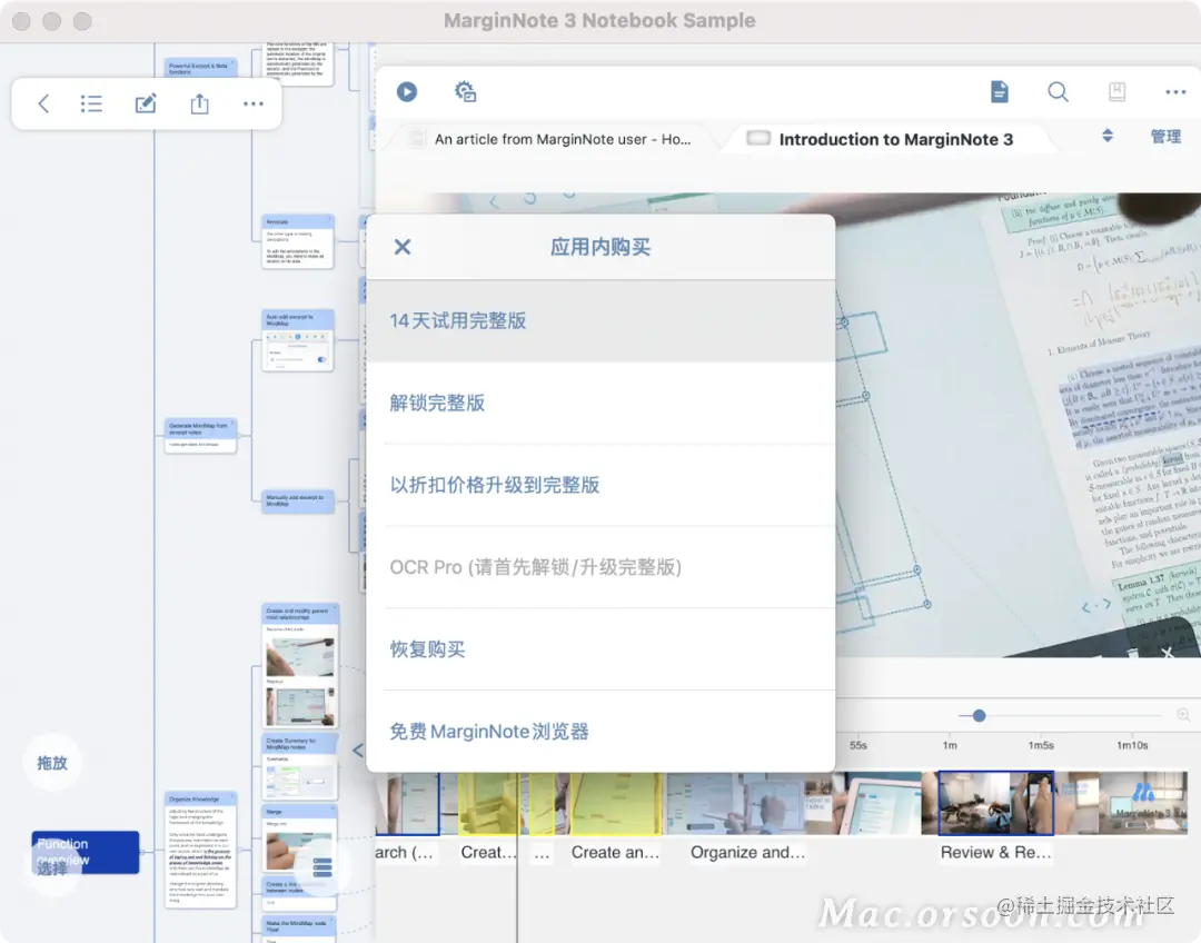 另外测试的一个应用为《MarginNote 3》,它在 Mac 上也可以很好地工作。不过完整功能依旧需要订阅。