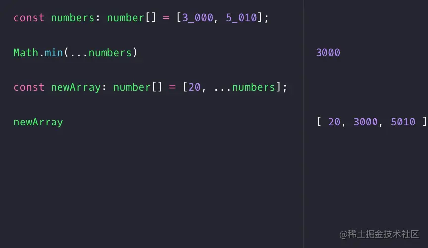 你可以在上面编写你的JavaScript或TypeScript代码,并且获得即时反馈。它的左边是代码区域,右边是输出结果的地方。