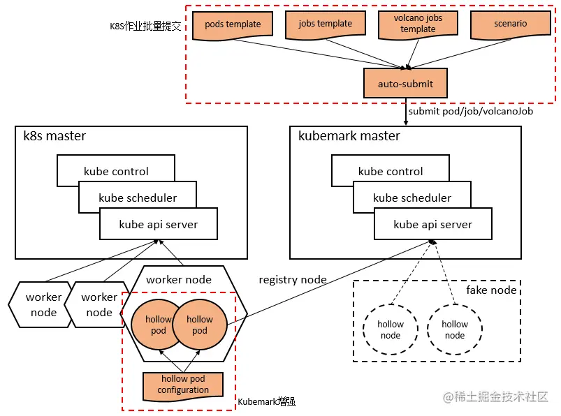Worker cluster:承载kubemark虚拟节点,hollow pod