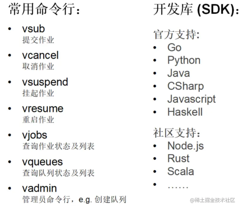 2)支持多队列用于多租户资源共享,资源规划;并分时复用资源