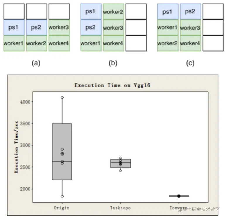 3个作业的执行时间总和; 每个作业带2ps + 4workers
