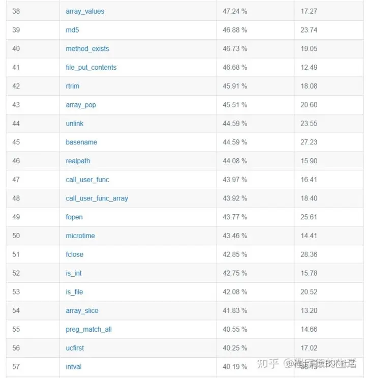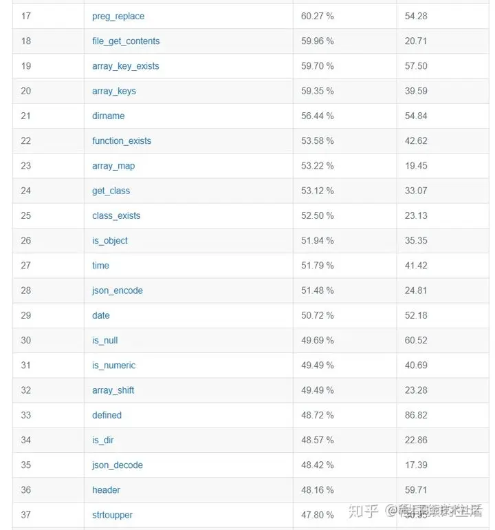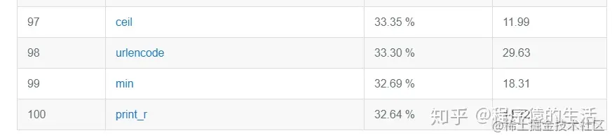 - array、echo、print、empty、isset 这些没有纳入此排名,它们的使用度肯定是非常高的。