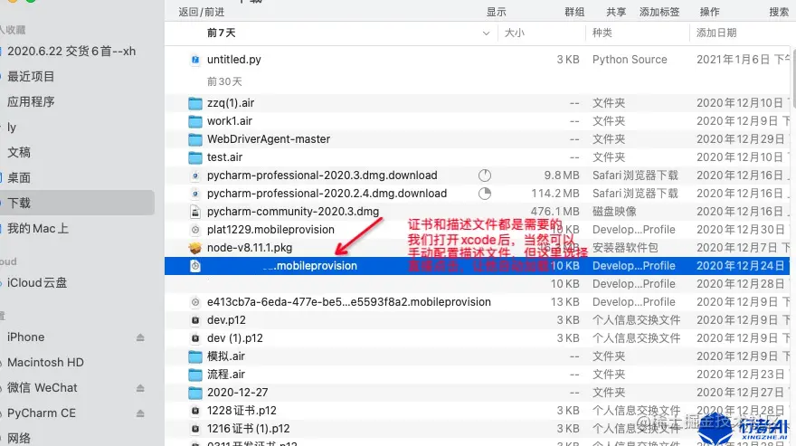 证书模式的话我们需要两个文件:一个是证书(后缀是.p12),一个是描述文件(后缀是mobileprovision)。