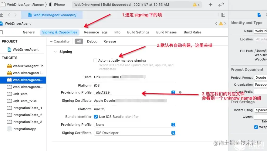 3.1 取消自动构建,手动设置开发者证书
