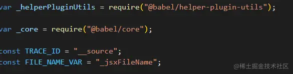 这里的@babel/helper-plugin-utils还有一个作用:dev环境时在打包过程中 输出文件代码块的位置,以便于调试定位,处理会返回输出的一个只读属性 "__source",其中包含 { fileName:path, lineNumber:number, columnNumber:number }