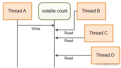 下图,说明了线程是如何访问count这个volatile变量的。