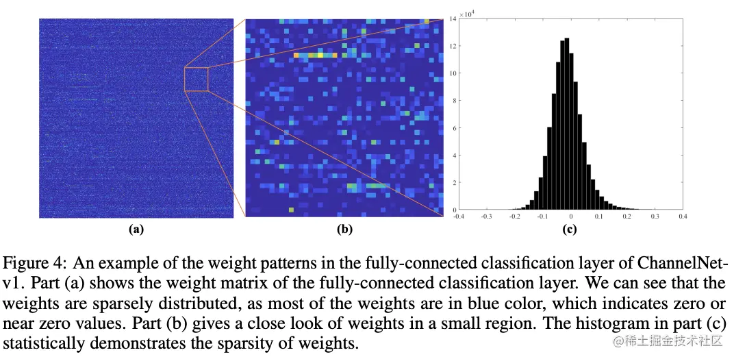 论文可视化了全连接分类层的权重,蓝色是代表为0或接近0的权重,可以看到全连接分类层的权重实际非常稀疏,即本身也只使用到部分输入,所以这里使用部分输入特征也是合理的。