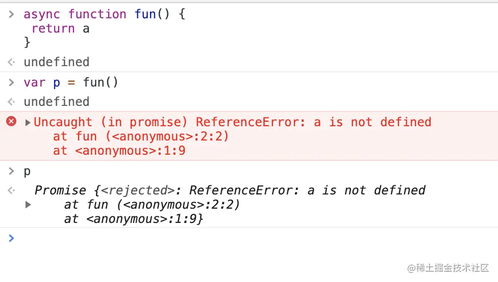 3、函数内部执行报错,则返回失败的promise实例,值是失败的原因