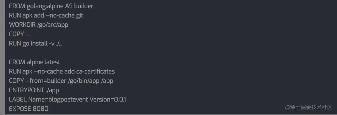 以下是这个应用程序的Dockerfile (大部分来自VSCode的golang Dockerfile模板):