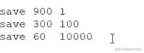 分别表示:900秒内有1个更改、300秒内有100个更改、60秒内有10000个更改,满足其中一种,就会触发;(可能会丢失数据)