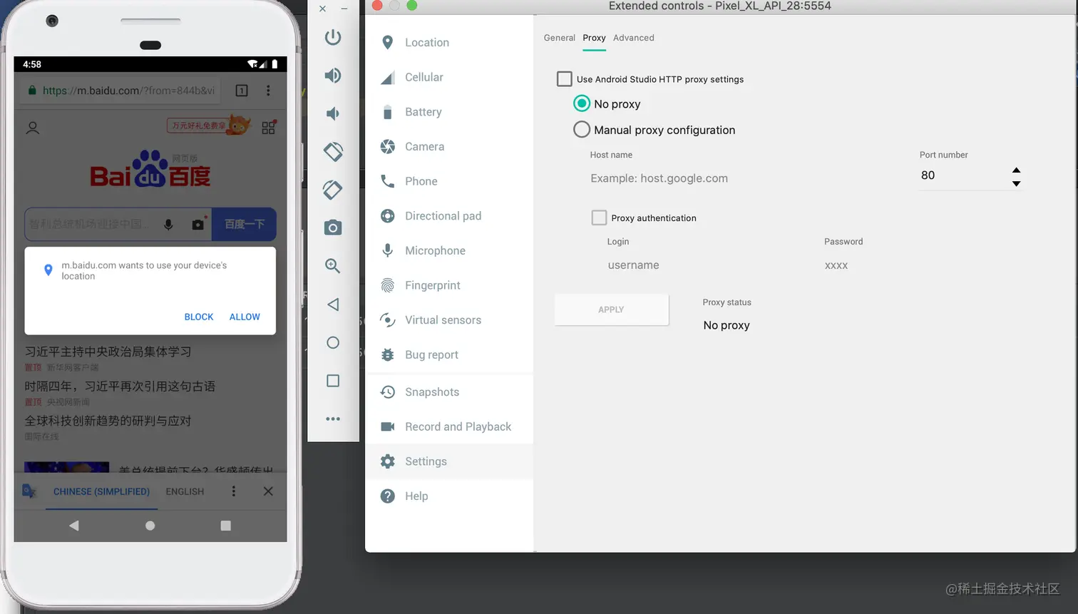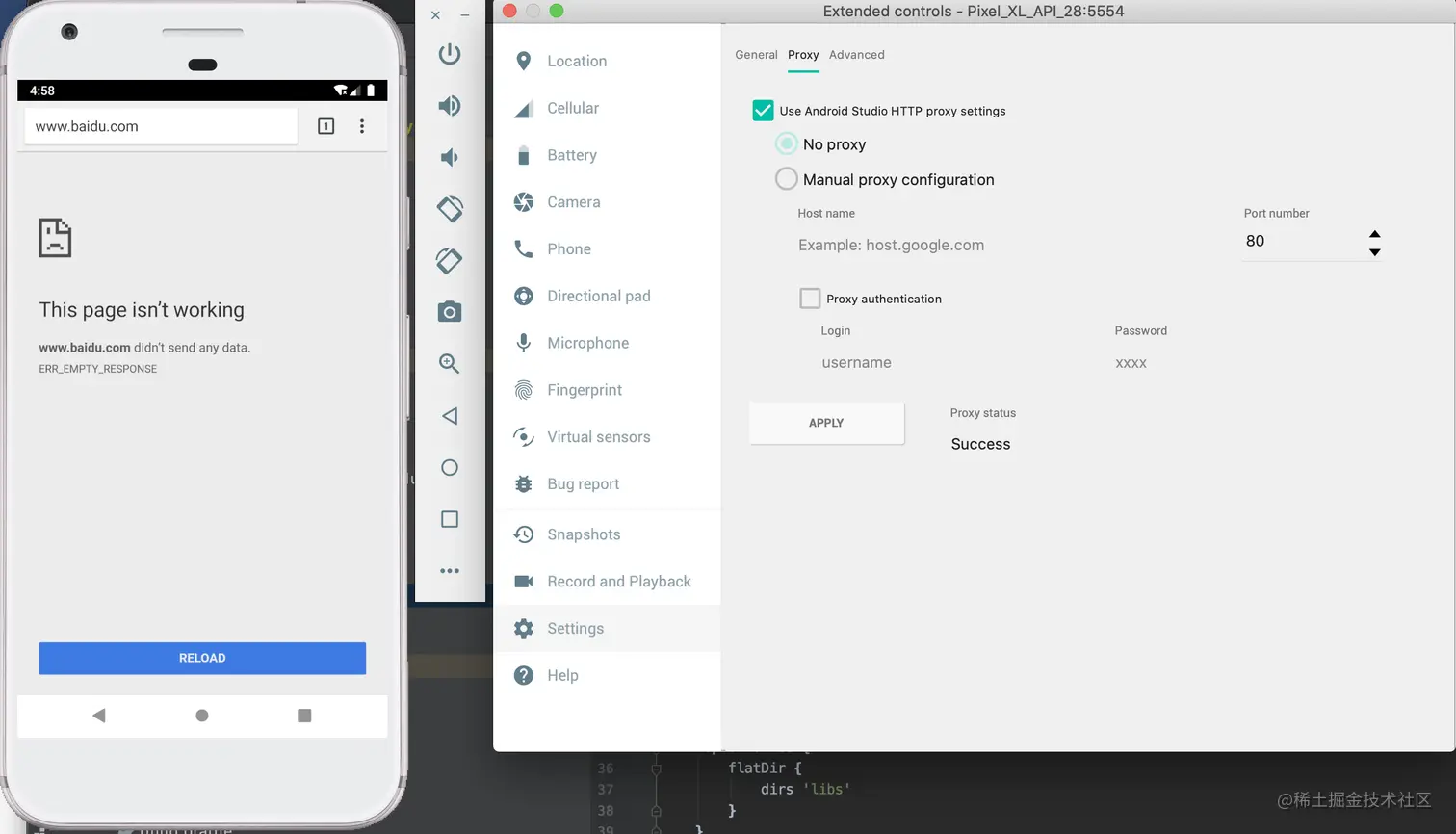 把Use Android Studio Http proxy setting取消勾选后,重启模拟器