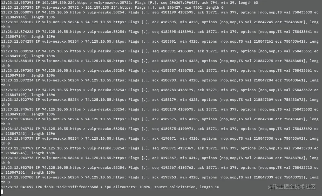 如您所见,即使从tcpdump读取所谓的“人类可读”输出也可能有点神秘。看下面的示例,我只是从转储中选出一个随机数据包: