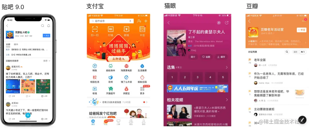 但是目前很多业务线存在产品展现形态单一,页面信息层级扁平问题。如下图展示10.0版本之前的贴吧与其他的社区产品在页面展现上的区别: