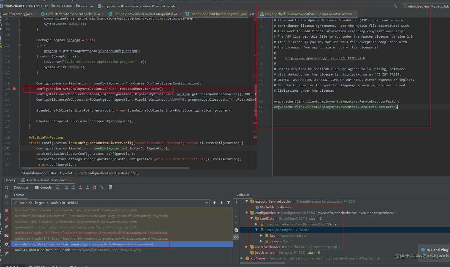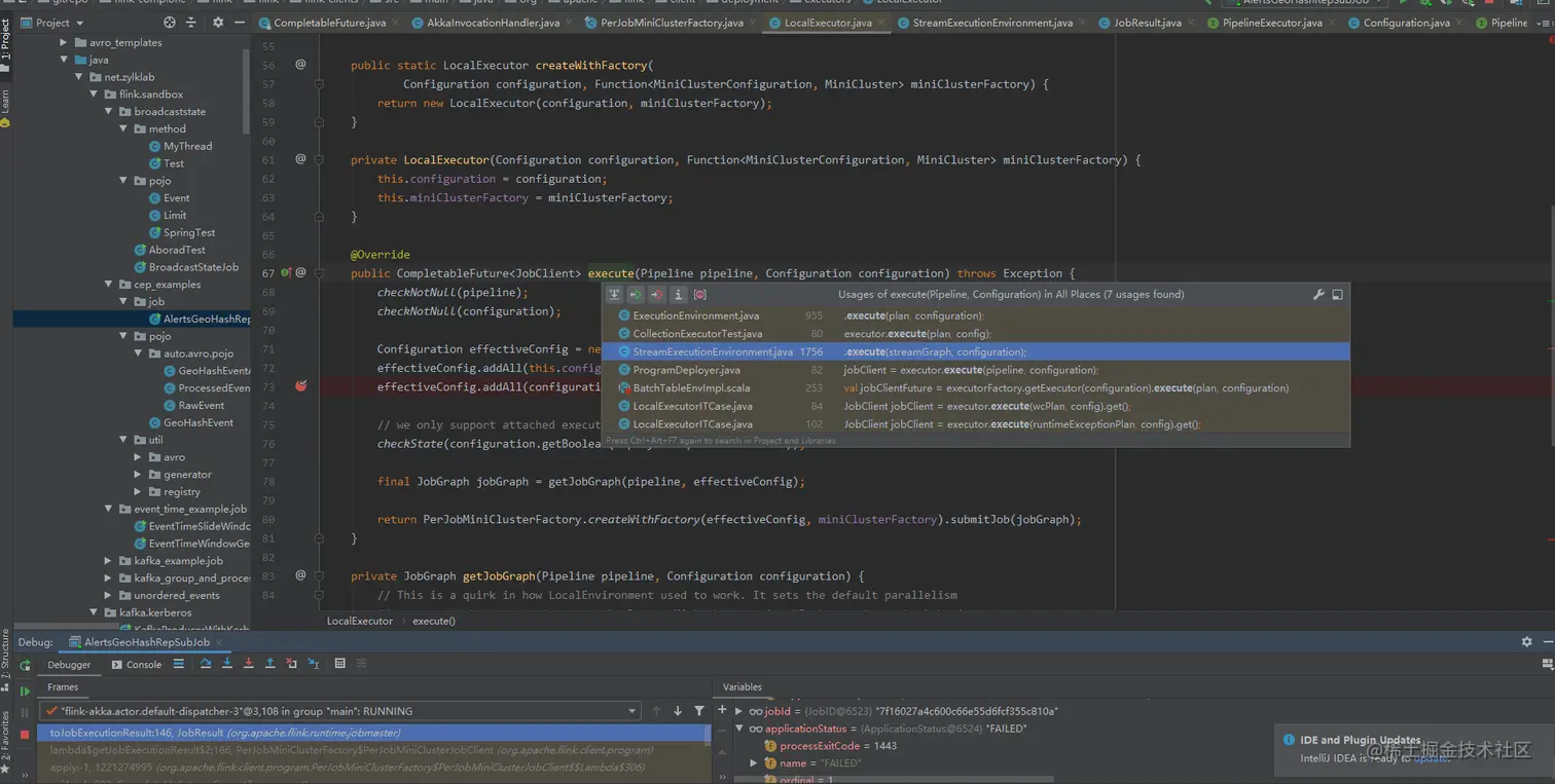 从上述代码段中StreamExecutionEnvironment#executeAsync 方法,需要加载configuration配置选取对应的Executor类型,假设我们重写一个新的LocalExecutor让其支持我们自定义的JobClient,猜测可以通过设置在configuration中的某些参数来进行调用