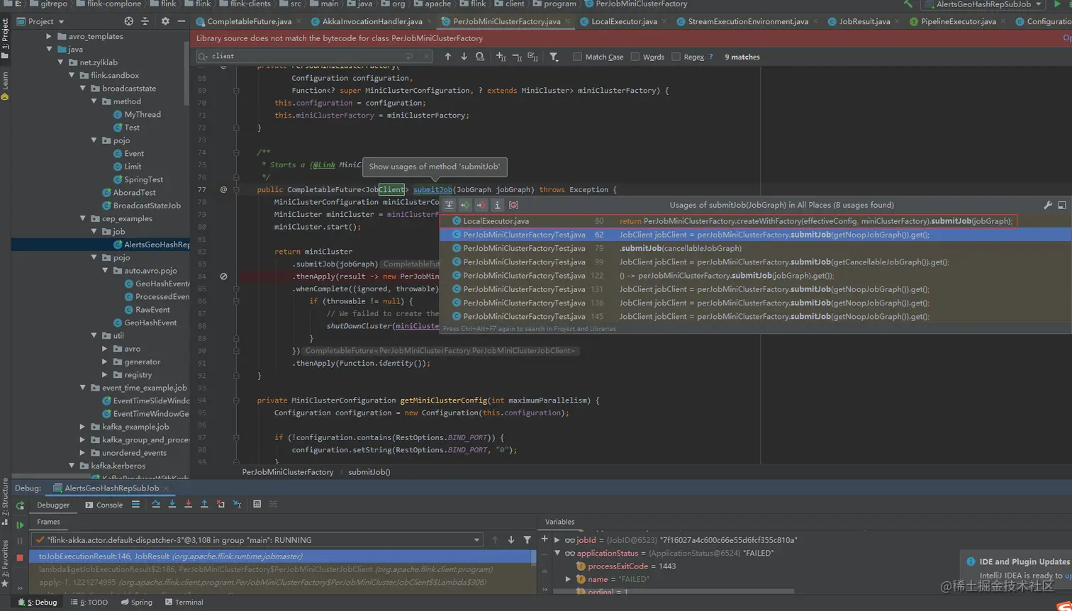 jobClient.getJobExecutionResult(getUserClassloader());