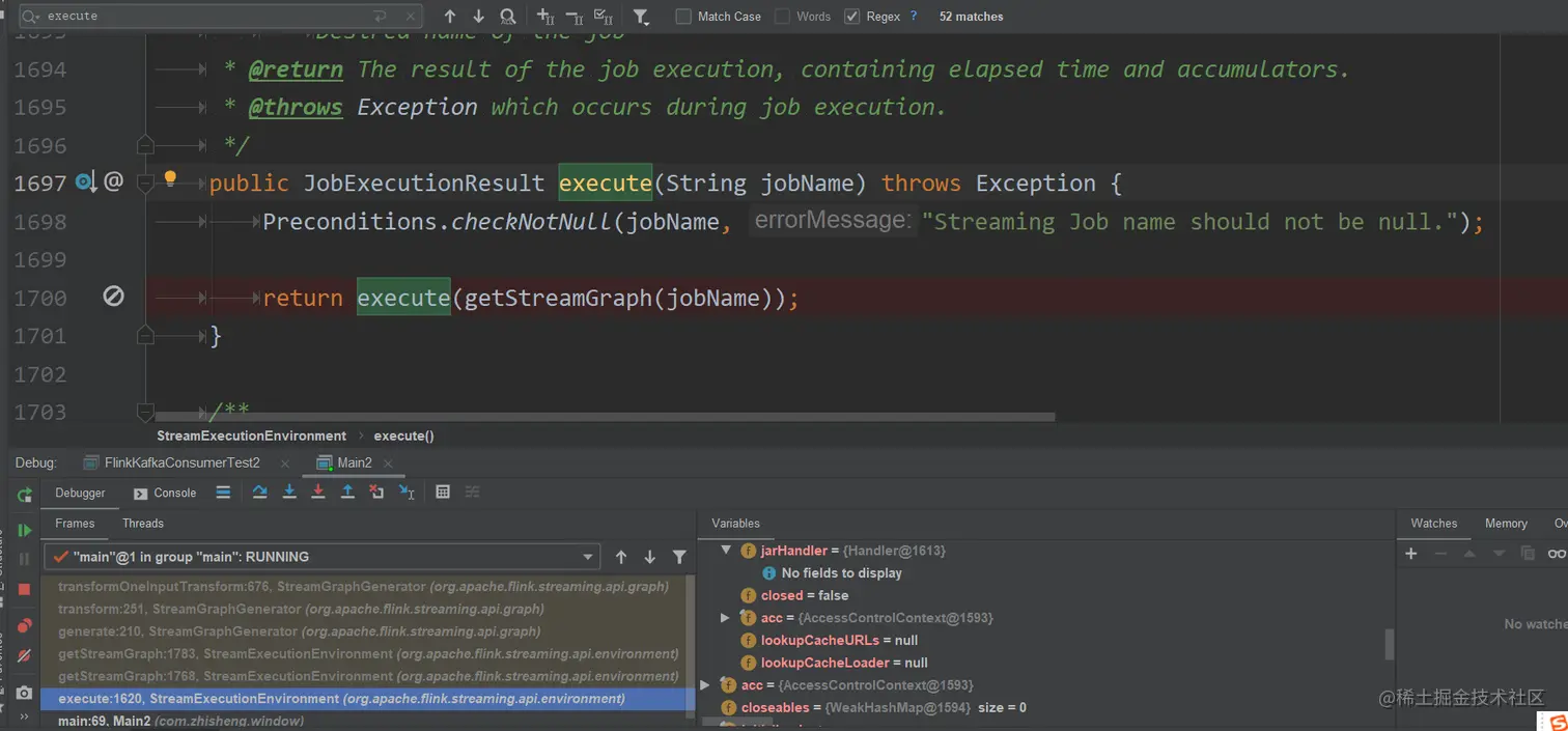 首先我们从StreamExecutionEnvironment#execute中进入