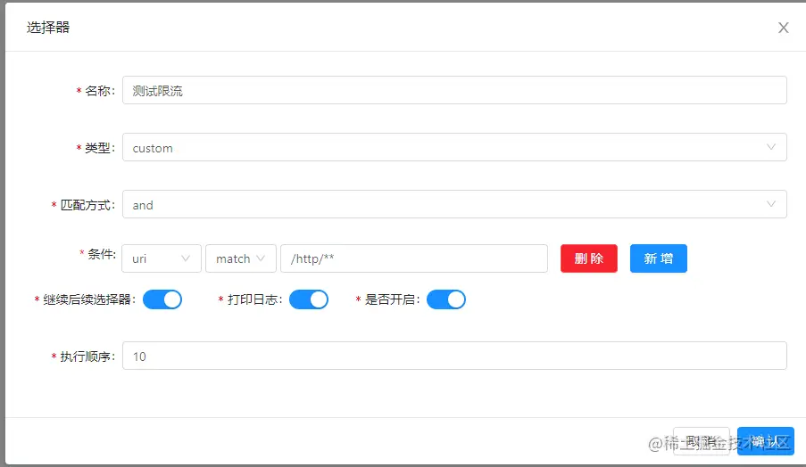添加限流选择器、规则