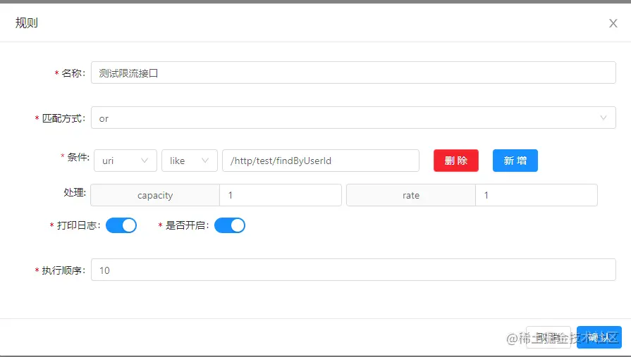 中间那位特别长的数字是规则ID,因为限流的最小粒度是规则。