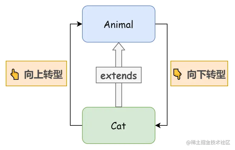 Cat cat = (Cat) animal; // 向下转型 Animal->Cat,animal 的实质还是指向 Cat