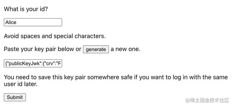要生成密钥对,我们将使用 window.crypto.subtle.generateKey 方法,并使用具有 JWK格式的 window.crypto.subtle.exportKey 导出私钥和公钥。可以将其视为序列化密钥以在JavaScript之外使用的一种方法。