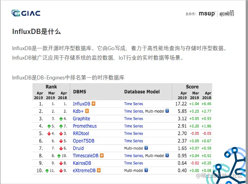 1. 背景补充:InfluxDB是DB-Engines上排名第一的TSDB,针对时序数据多写、少读、成本敏感等特点而设计的TSDB,并做了多轮架构迭代和优化,是一款实时、高性能、水平扩展(InfluxDB Enterprise)、具有成本优势的TSDB。但在2016年,Paul Dix基于商业化和持久运营的考虑,尚未成熟的集群能力在v0.11.1版后,选择闭源,推出了收费版的InfluxDB Enterprise和InfluxDB Cloud。