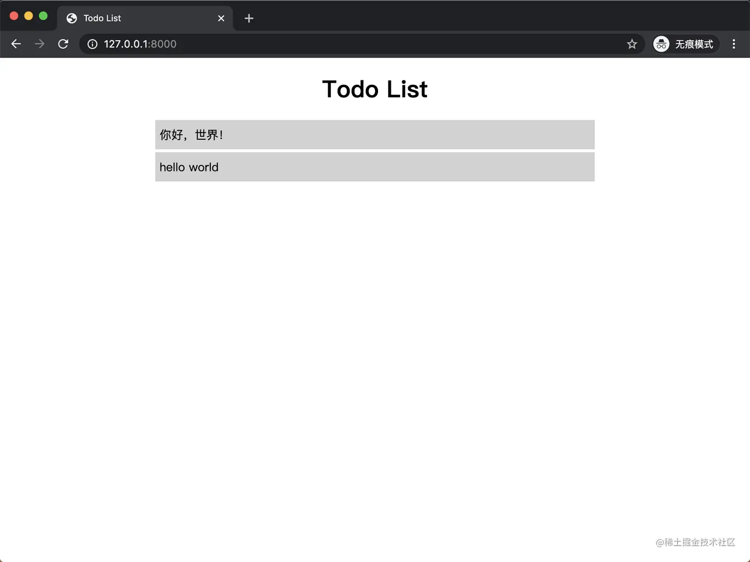 终端中进入项目根目录 todo_list/ 下,使用 Python 运行 server.py 文件,就能看到带有 CSS 样式的 Todo List 程序首页了: