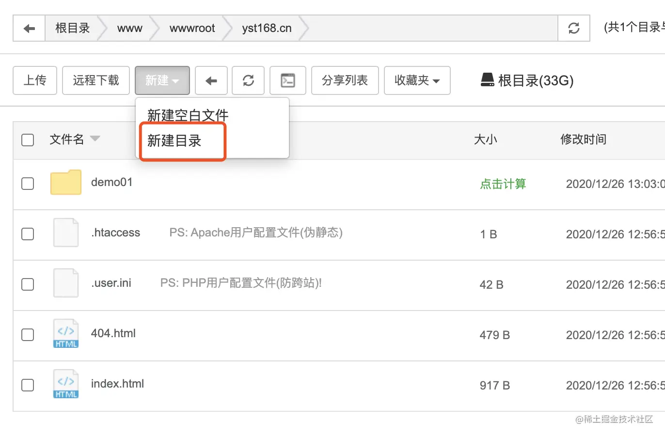 3、在站点的目录下创建一个文件夹