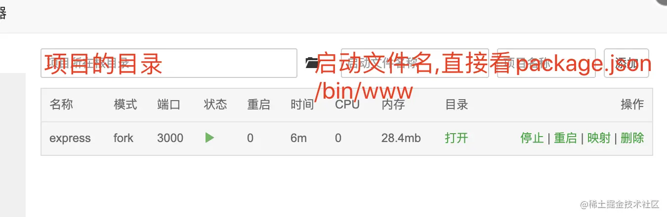 PM2的面板中添加express_demo项目启动 -