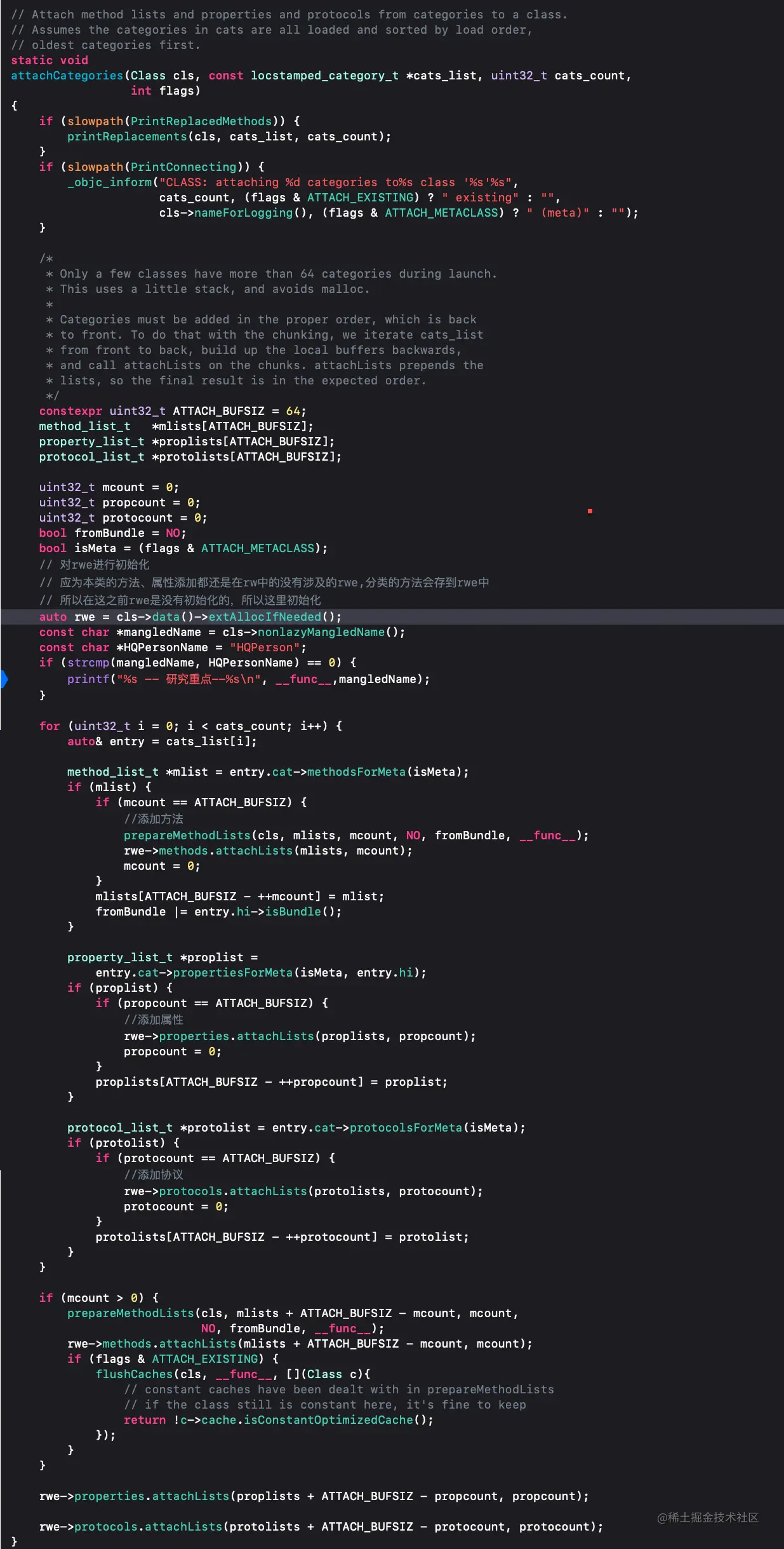 attachCategories源码分析看注释就知道此方法主要将分类中的方法、协议、属性添加在类中
